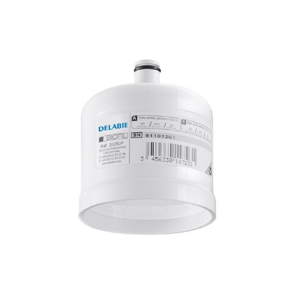 La Cartouche Filtrante Stérile Biofil Delabie Jet Douchette 20250 offre une eau sans micro-organismes. Adaptée aux établissements de santé, elle filtre l'eau en sortie de robinet pendant 62 jours.